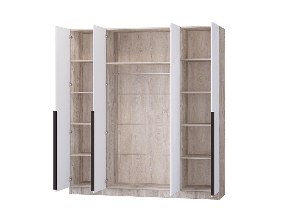 Зеркало Размер зеркала Внутреннее 1385х275 (1 шт.) продается отдельно Материал Материал корпуса ЛДСП Материал фасадов МДФ Тип петель Петли Накладные с доводчиком * Фасад и корпус шкафа доступны для заказа по отдельности. Вы можете самостоятельно подобрать цветовую гамму фасада и корпуса, создав уникальный дизайн шкафа. Дополнительно предоставляется возможность выбрать фурнитуру: ручки предлагаются в двух элегантных вариантах отделки — чёрном или золотом исполнении(ручки покупаются отдельно).* Комплект зеркал покупается отдельно. Наклейка зеркал осуществляется самостоятельно согласно схеме сборки