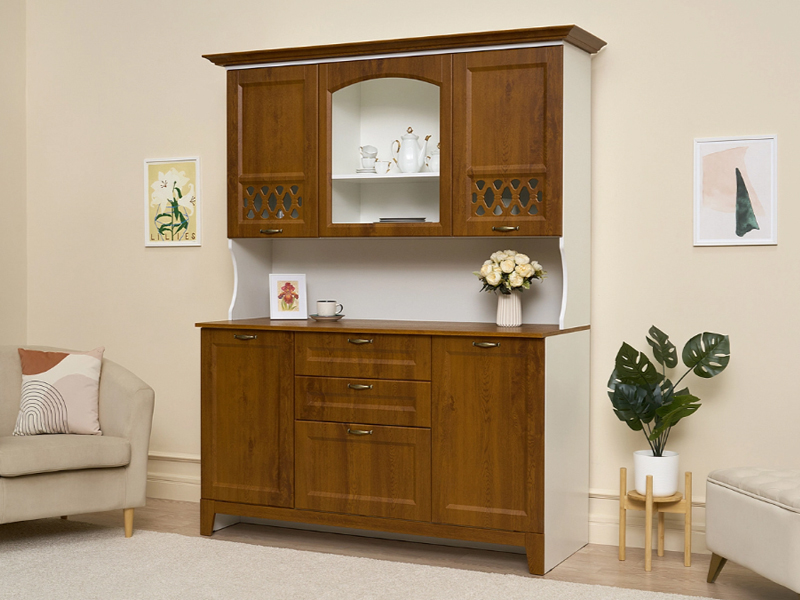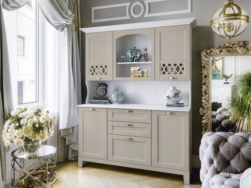 Буфет Милано в классическом стиле придаст вашей кухне придаст вашей кухне отличный вид и послужит удобным местом для хранения кухонных принадлежностей. Изготавливается в двух цветах.
