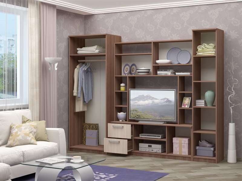 Гостиная с платяным шкафом и закрытым пеналом. Преобразит комнату и станет источником дополнительного комфорта. Гостиная «Флора» – это практичность и безупречный стиль, в этом и заключается причина ее популярности.