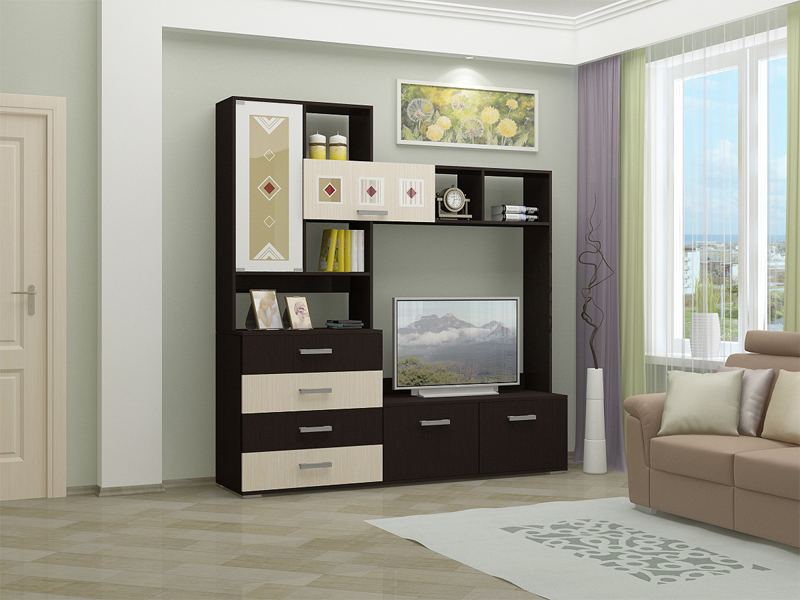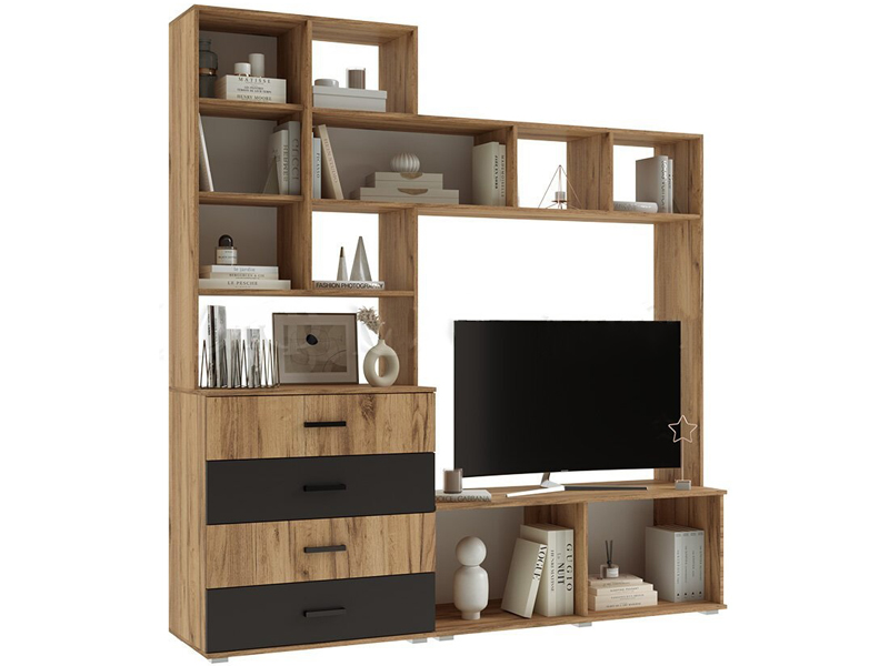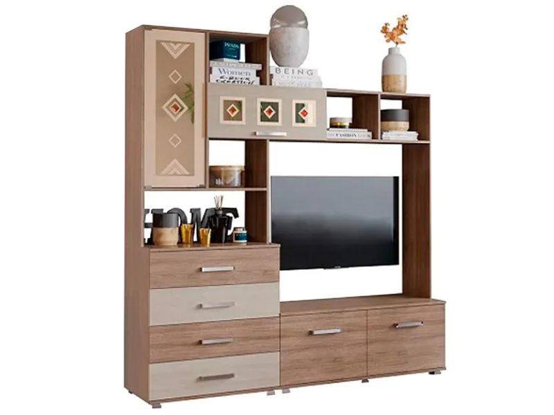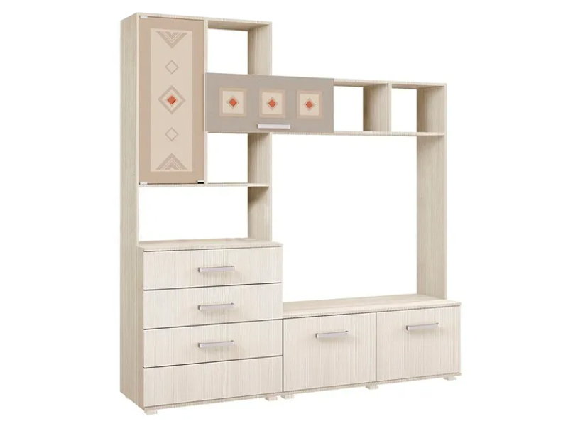 Центральная секция имеет четыре выдвижных ящика с использованием механизма полного выдвижения и закрывания, дно ящика выполнено в цвете корпуса.