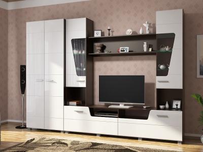Тумба напольная имеет две откидные створки на газлифтах (секретерных), Два открытых проема под технику (593х154х362мм) (Размер Тумбы напольной 2000х491х381мм)