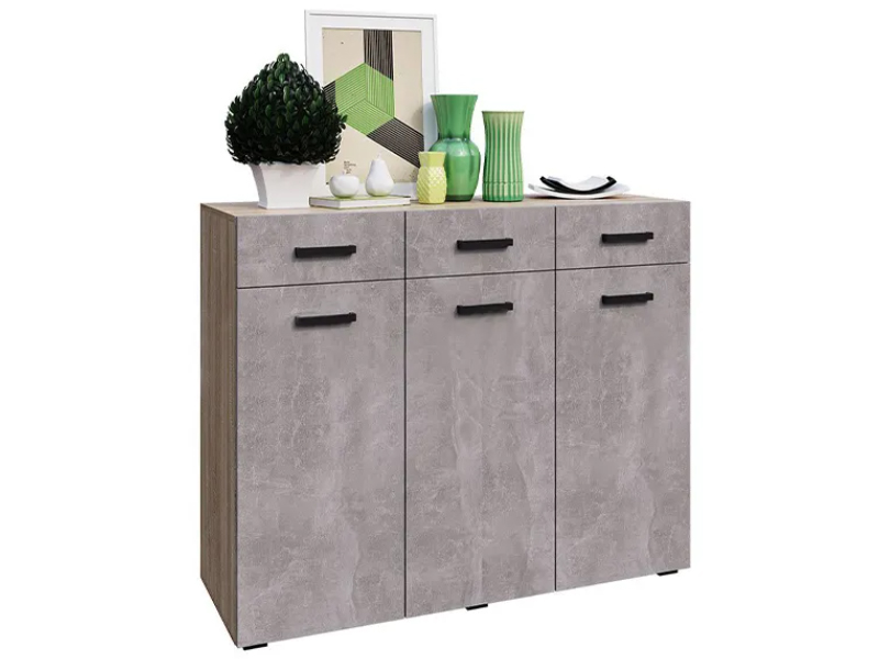 Комод (3д+3ящ) к модульной гостиной "Нэнси New" ЛДСП (Бетон светлый/сонома(белый))