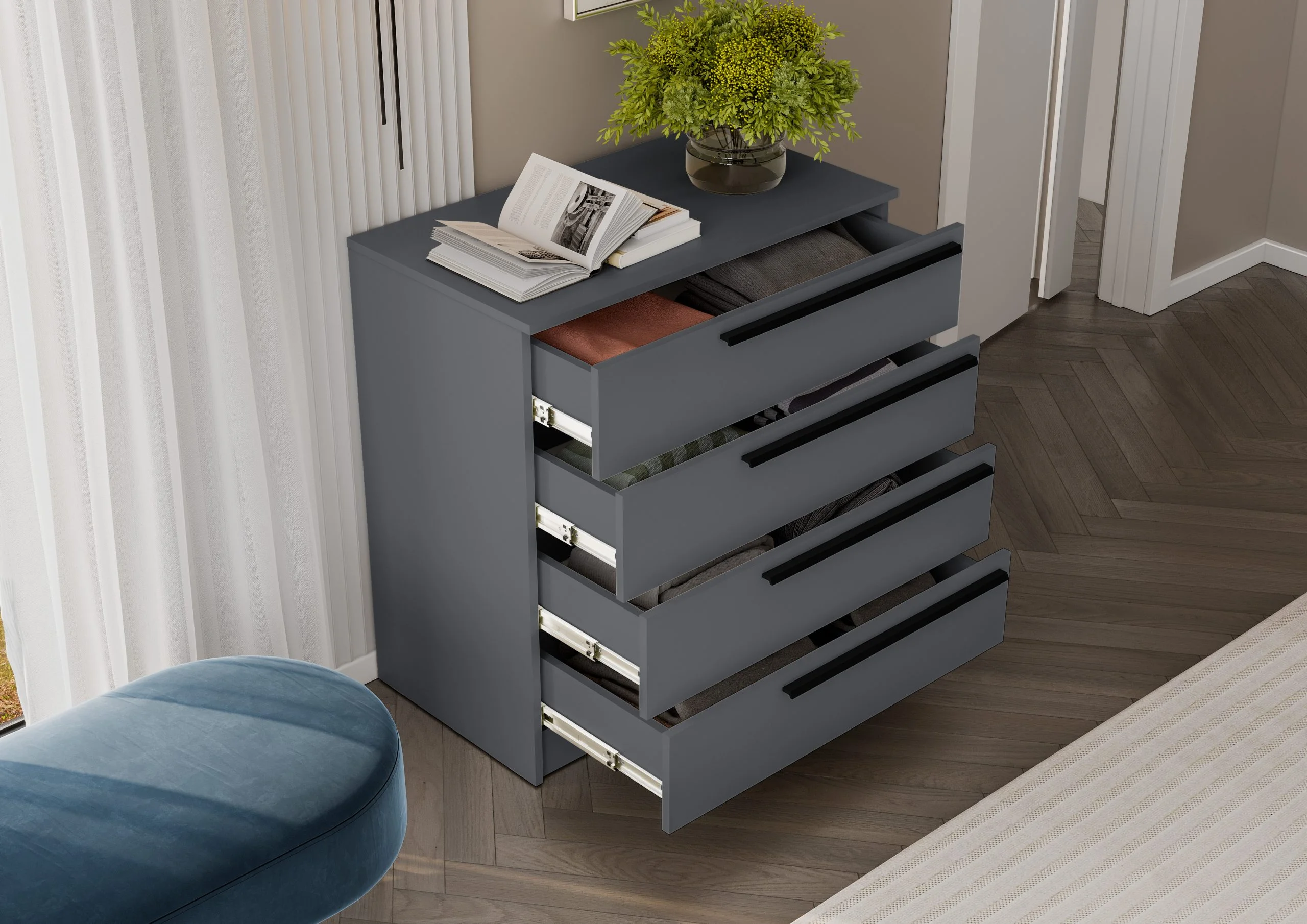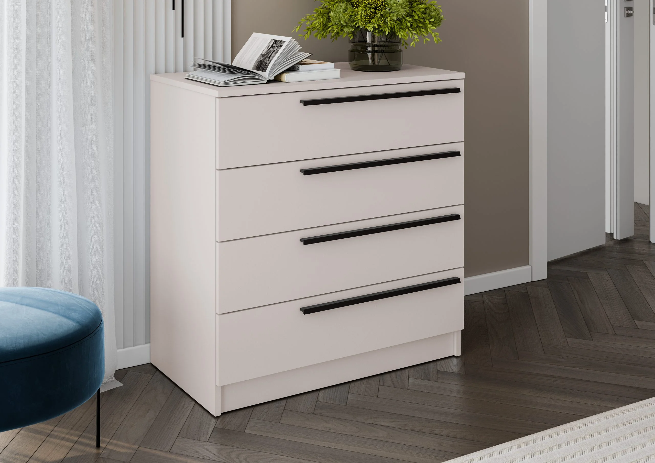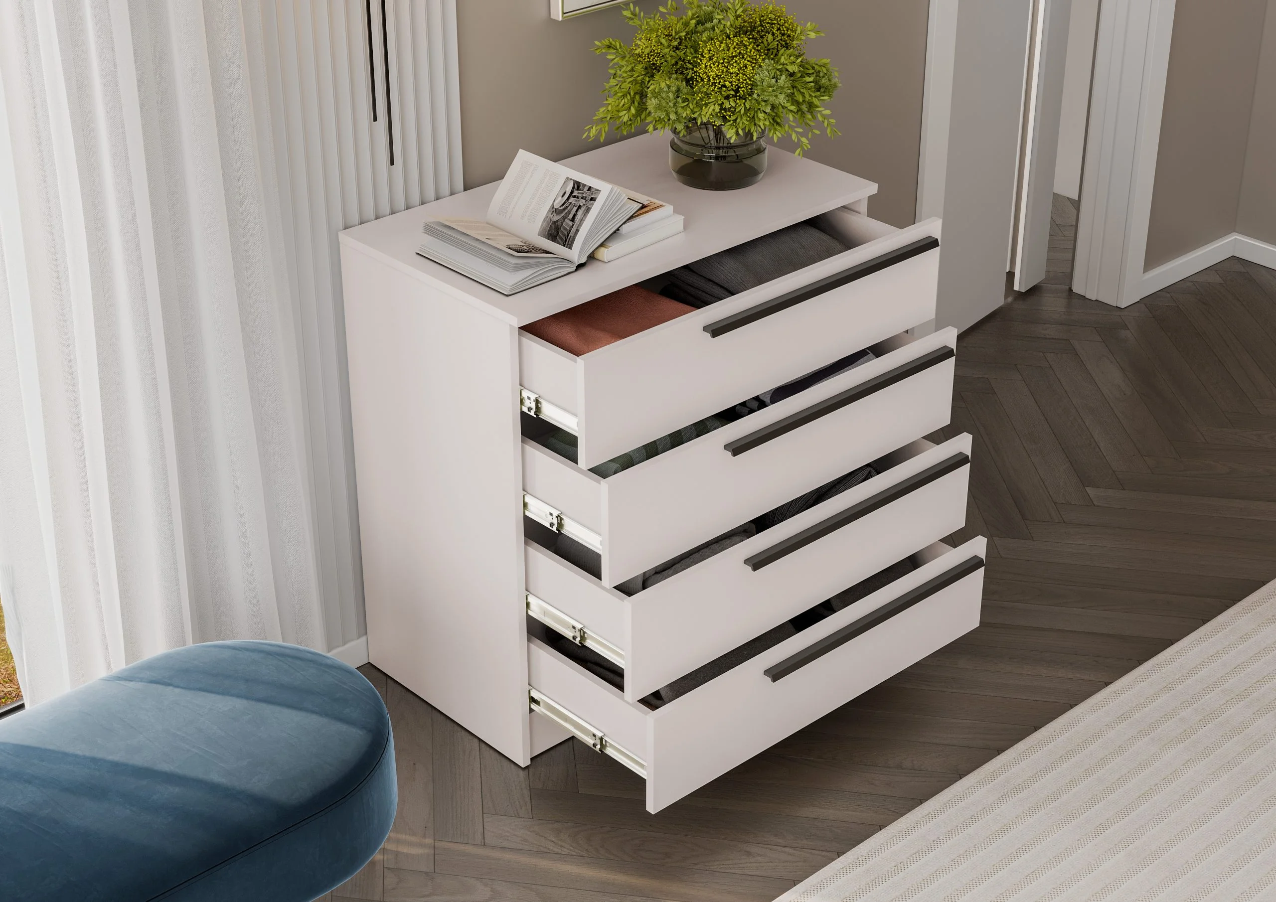 Комод Берген с выдвижными ящиками — отличный вариант для небольшой комнаты или прихожей.