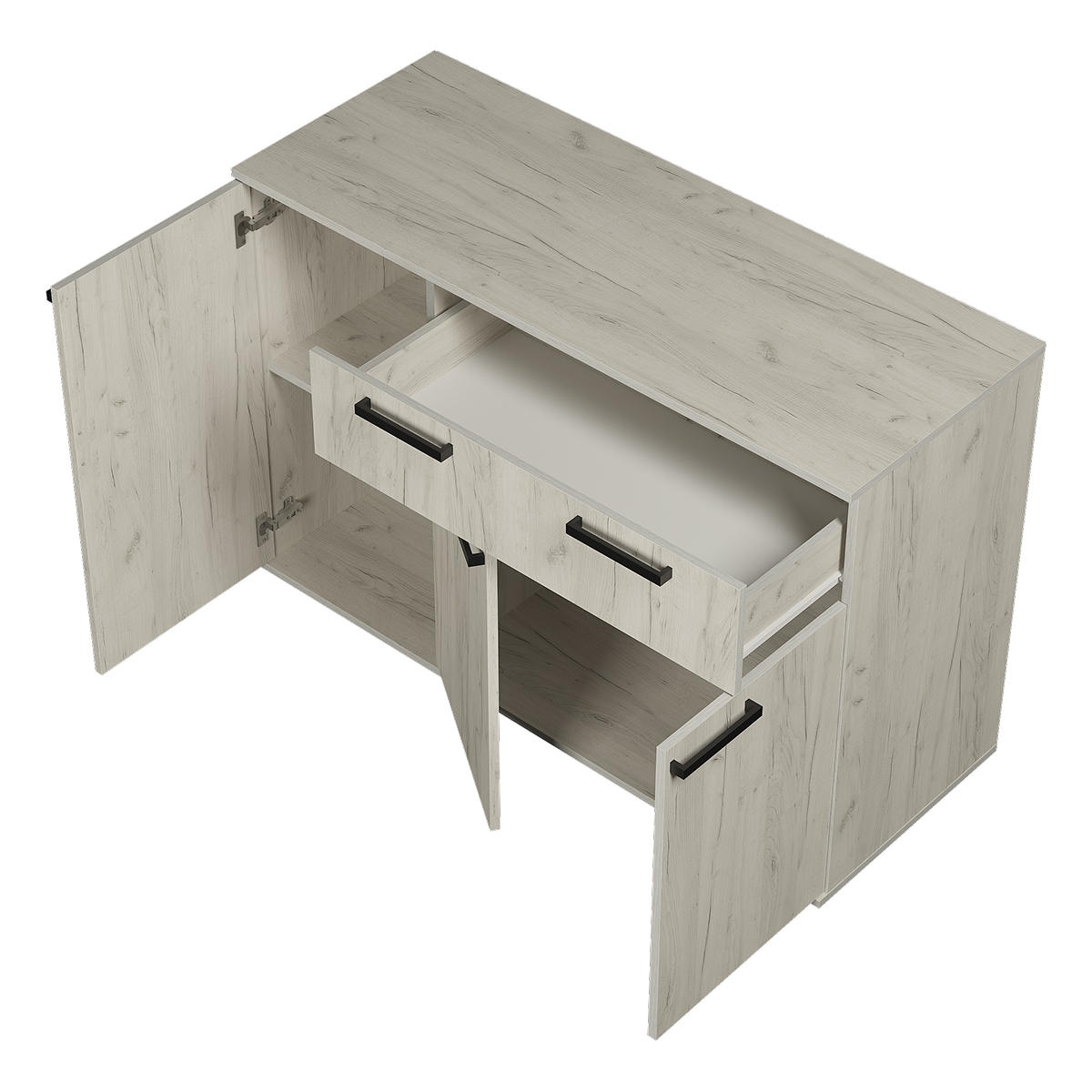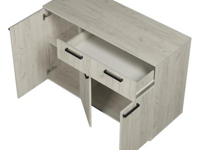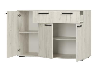 Комод «Стандарт № 4» – очень практичное решение для вашего интерьера. Он вместит в себя большое количество предметов и вещей. Модель состоит из трех секций: верхнего выдвижного ящика, левой части с распашной дверцей и нижней секции также с распашными дверцами и спрятанными за ними полками.