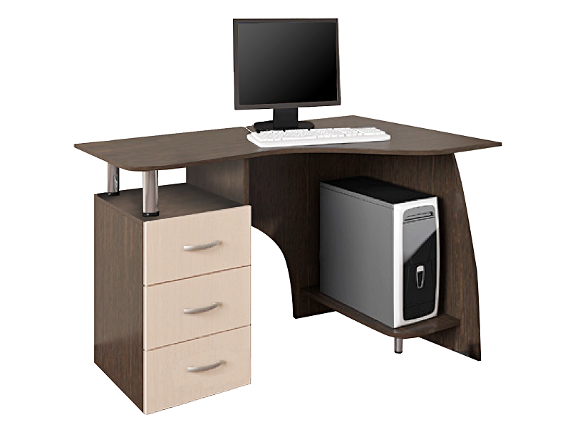 Удобный компьютерный стол легко вписывается практически в любой интерьер дома или офиса и принесет комфорт тому, кто будет за ним работать. Три ящика позволяют хранить всё, что нужно, а закругленная форма столешница делает этот стол безопаснее для детей.