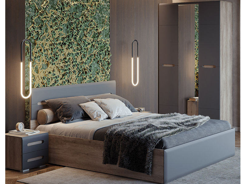 Стильная двуспальная кровать "Наоми" – это прекрасный выбор для спальни. Выполненная из ЛДСП цвета "дуб каньон" и МДФ цвета "графит", она будет отлично смотреться в интерьере современного стиля. Модель кровати всегда можно дополнить модулями из одноименной коллекции мебели и создать законченный образ спальни. Рекомендуемая высота матраса - от 180 мм.