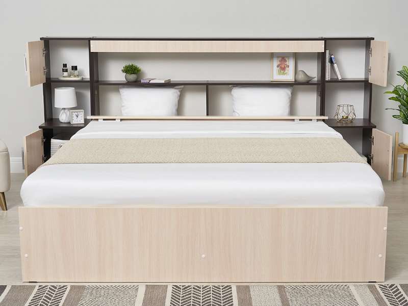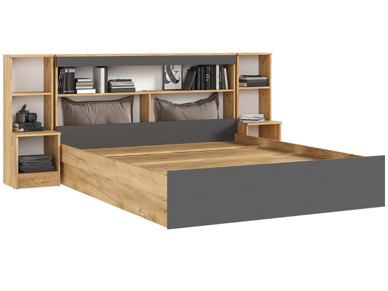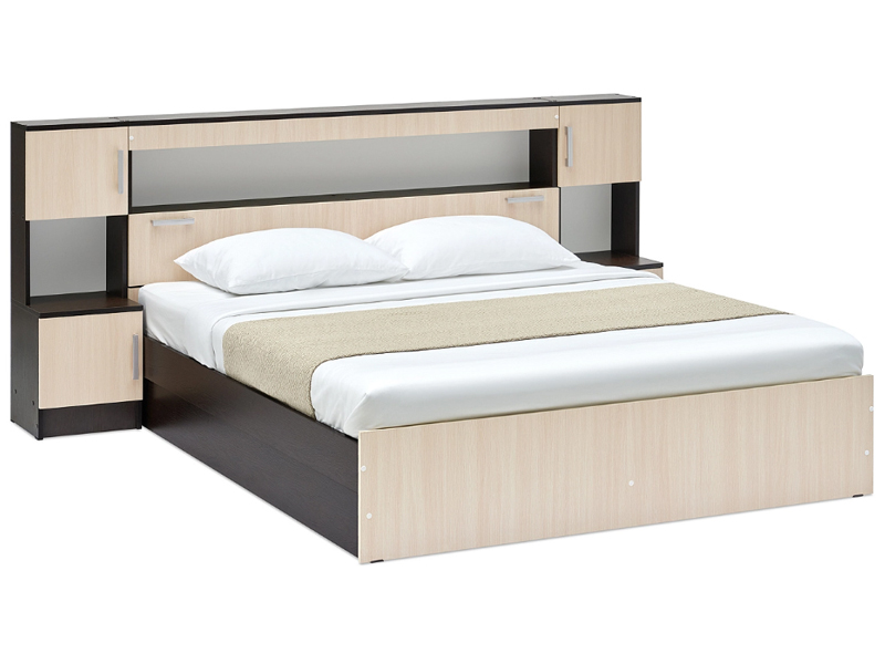 Кровать 1,6 м с надстройкой с тумбами к модульной спальне "Бася"