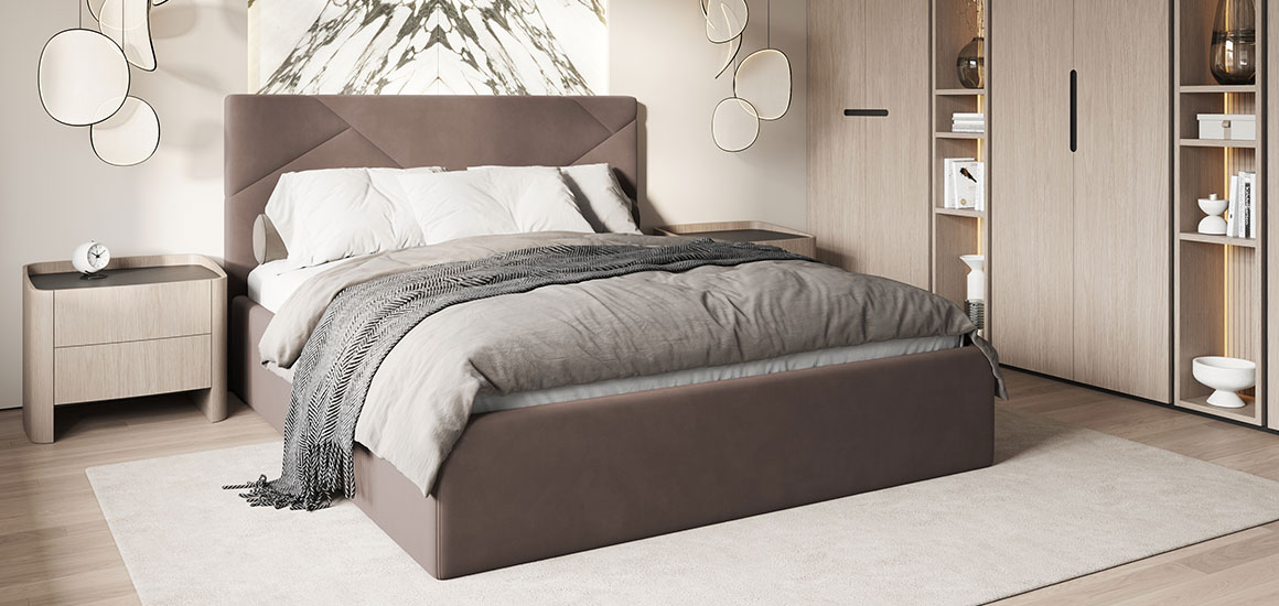 Кровать Бьянка впишется в любой современный интерьер и станет любимым местом в доме. Ее особенности: высокое и мягкое изголовье со стильной стёжкой, небольшие размеры по ширине относительно спального места – всего 11 см плюс к размер у спального места.