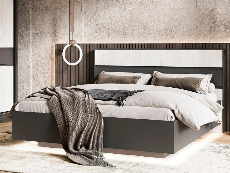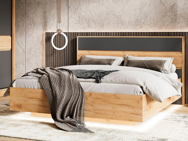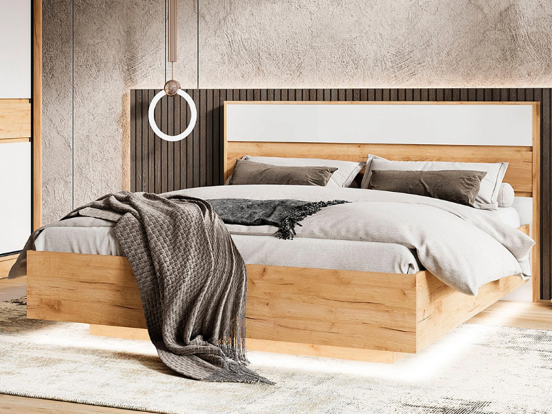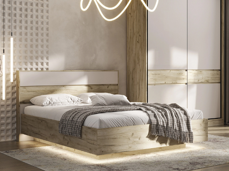 Кровать парящая 1,6 м (ортопед дерево) с подсветкой к модульной спальне "Роджина"
