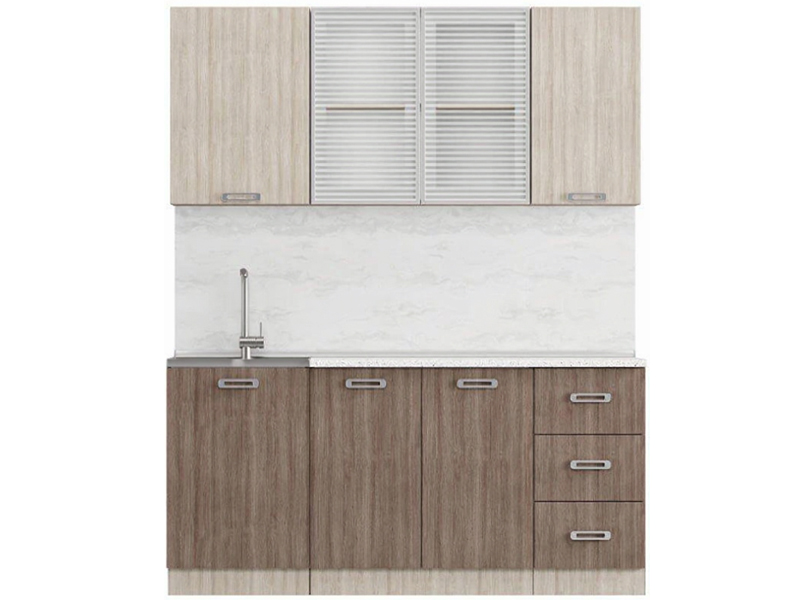 1.7метра (стол 50см под мойку/шкаф 50см + 80см стол/ шкаф 80см стекло + 40см с ящиками/шкаф 40см)