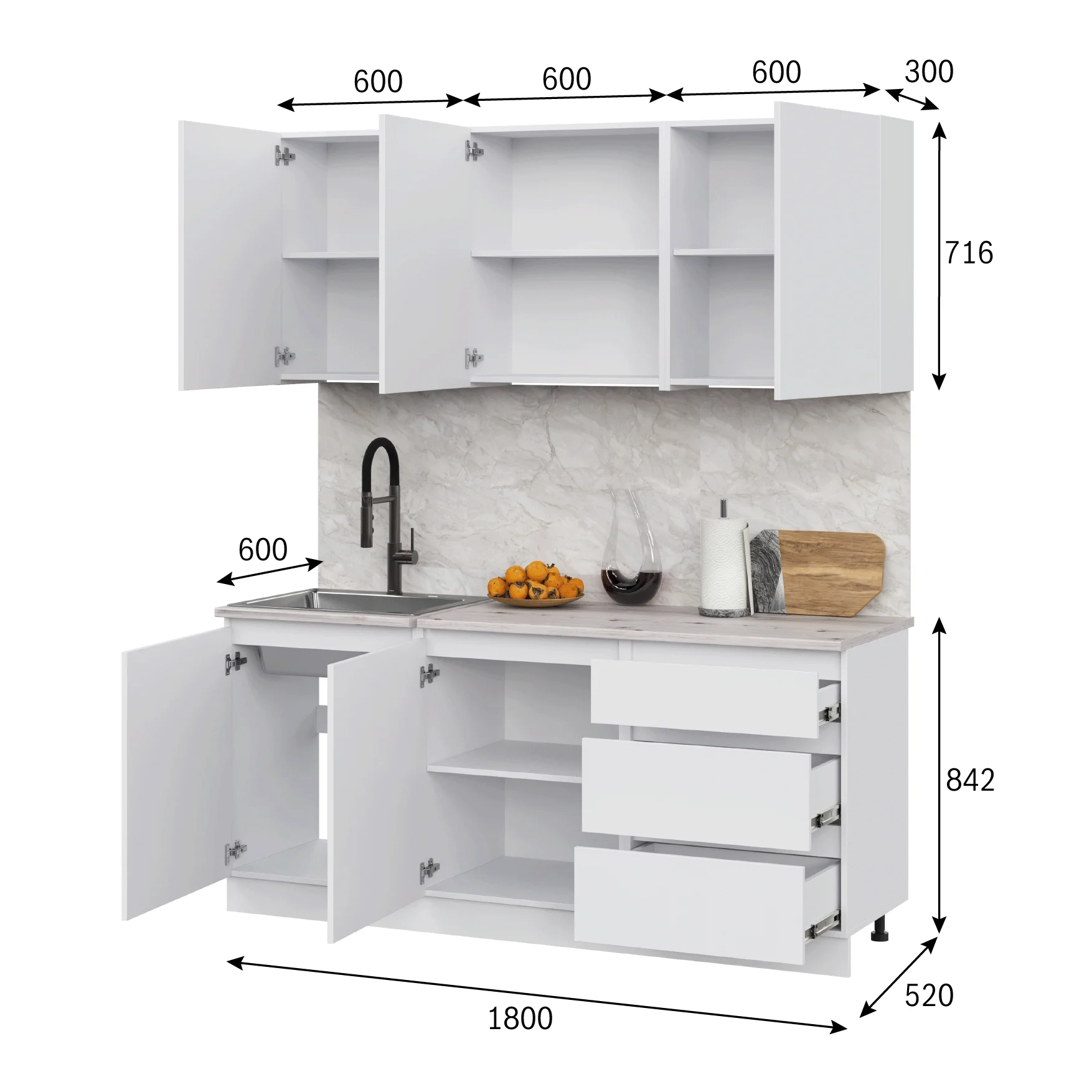 Кухонный гарнитур Айден - практичный комплект из ЛДСП длиной 1,8 метра в современном стиле.
