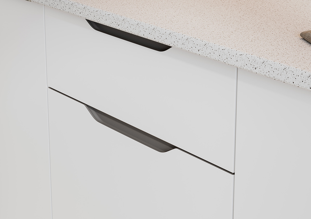 Кухонный гарнитур Кайли — практичный комплект с интегрированными ручками в современном стиле Корпус: ЛДСП Фасад: ЛДСП (18 мм) – Верхние модули: ШВ 1200, ШВ 600-1 (ВхГ) 715х300 мм – Нижние модули: ШНМ 600-1, ШН1Я 600, ШН 600-1 (ВхГ) 841х440 мм, высота указана с учётом столешницы Столешница 26 мм ( 0.6м, 0.6м): Антарес – Роликовые направляющие – Лицевая фурнитура отсутствует Высота кухонного гарнитура изменяется в зависимости от вашего варианта установки