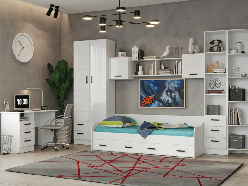 Дизайн детской модульной мебели Вега NEW предназначен для детей подросткового возраста, она удобна, функциональна, качественна. С такой мебелью можно с легкостью убирать свои принадлежности, различные аксессуары, диски, книги и другие предметы. В комнате с мебелью Вега NEW ребенок будет себя чувствовать уютно и комфортно.