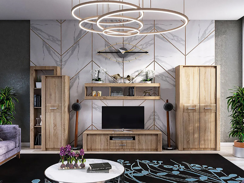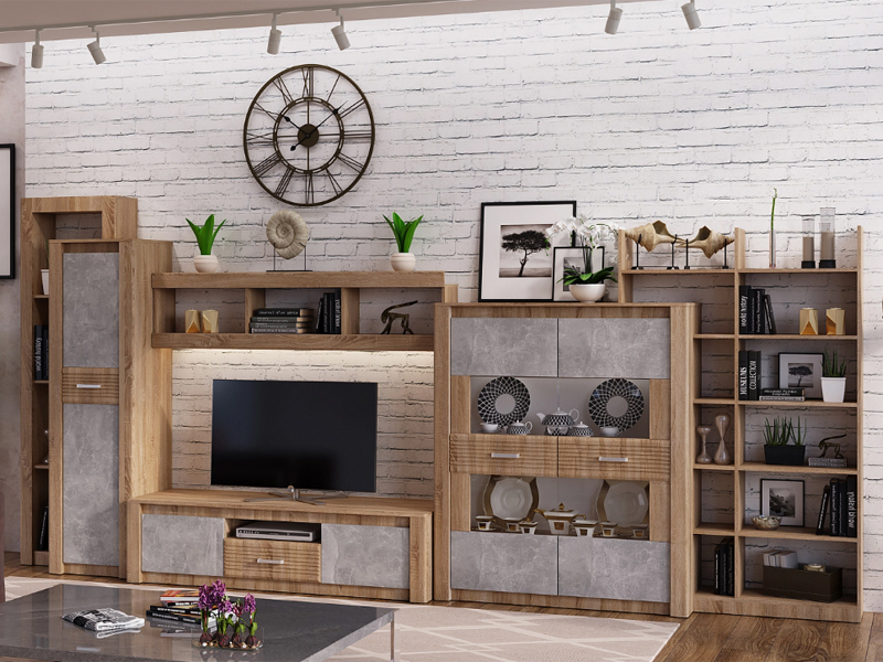 «Терра» — модульная система для гостиной, современное решение для квартиры и дома. Благодаря лаконичному дизайну и приятному актуальному цветовому решению гостиная отлично впишется в любой интерьер. Сочетание оттенков натурального дерева — тренд настоящего времени, который, несомненно, привлечет взгляды и вызовет интерес гостей. Помимо актуального внешнего вида модульная система для гостиной «Терра» обладает еще одним неоспоримым плюсом-функциональностью. Вместительные шкафы-то, что нужно для хранения в доме всего необходимого.