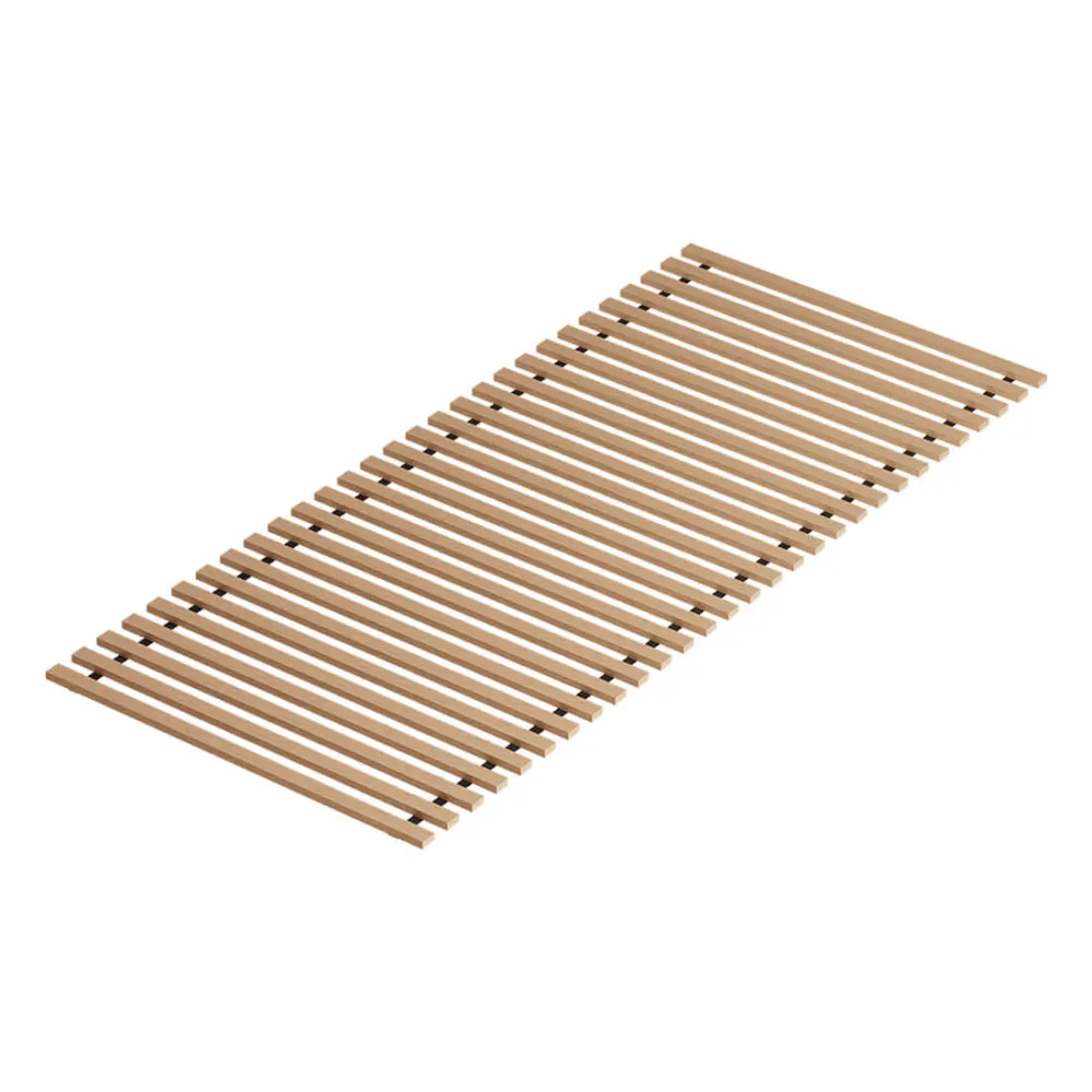 Настил реечный – это рейки, скреплённые между собой лентой, сделаны из прочной берёзовой фанеры толщиной 12 мм. Благодаря своей конструкции давление равномерно распределяется по всей площади спального места, обеспечивая качественную вентиляцию матраса со всех сторон, что гарантированно продлит его ортопедические характеристики и срок эксплуатации.