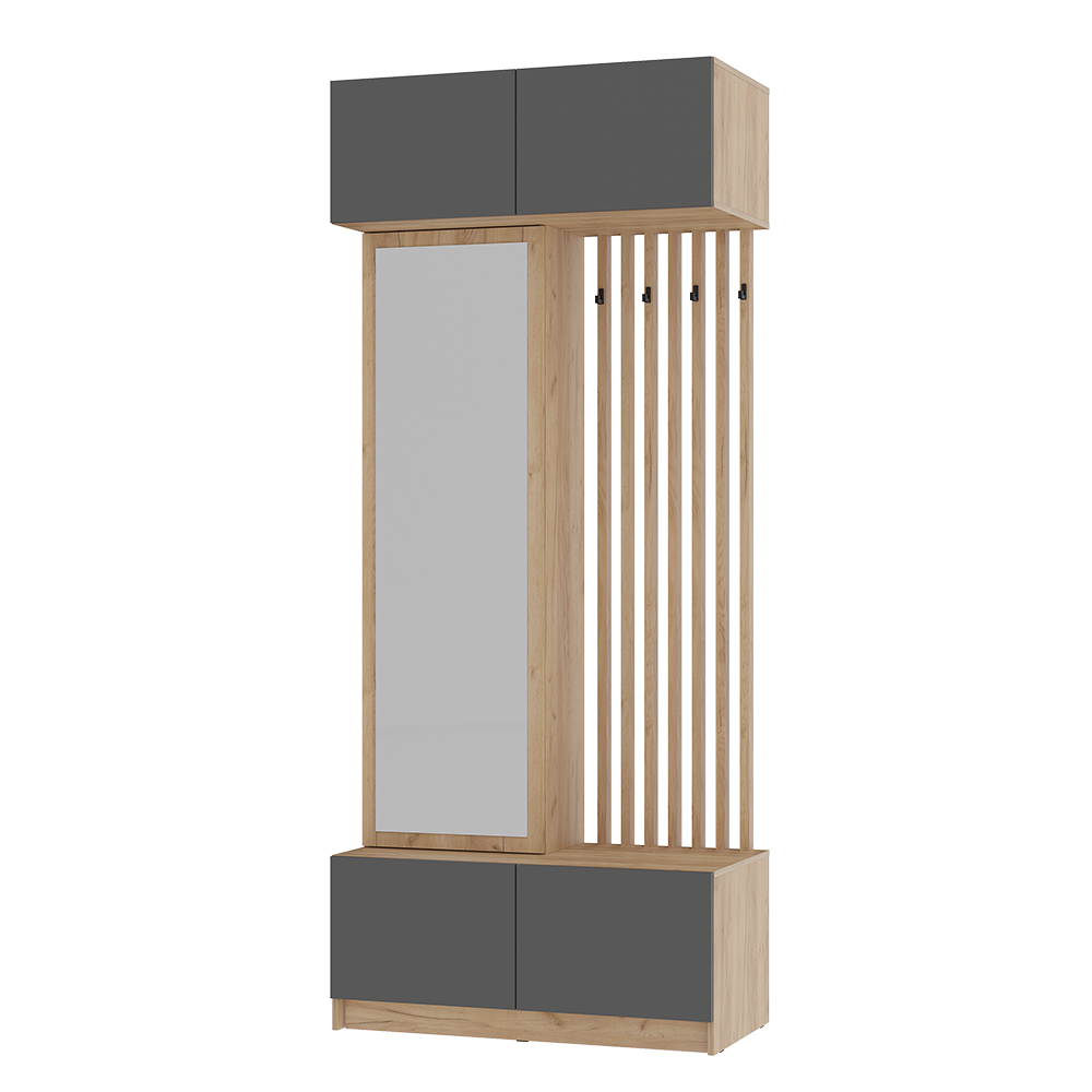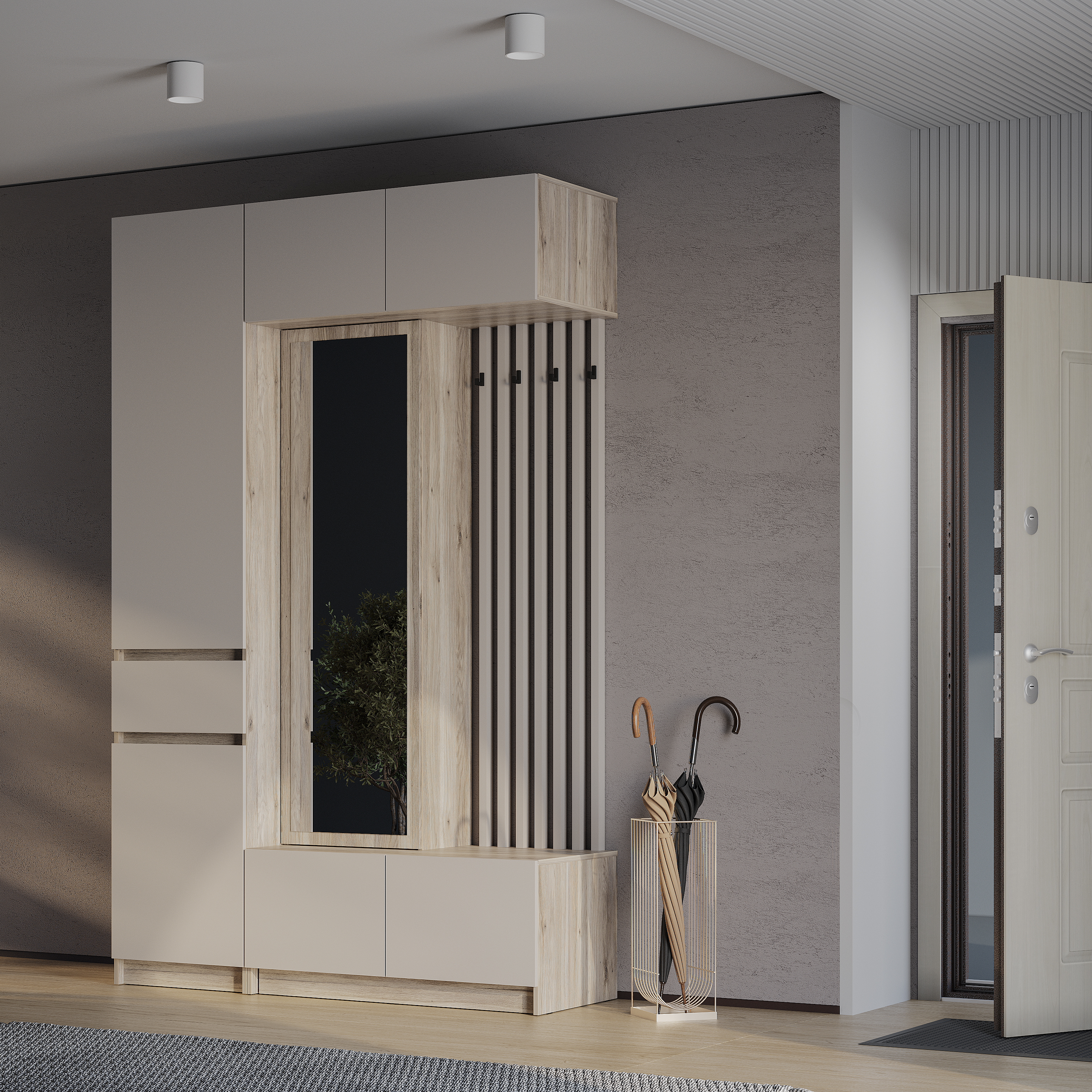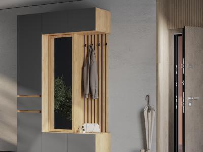 Стильная и компактная прихожая «Багира» – это оптимальное сочетание открытых и закрытых зон для хранения верхней одежды, головных уборов, обуви и аксессуаров.