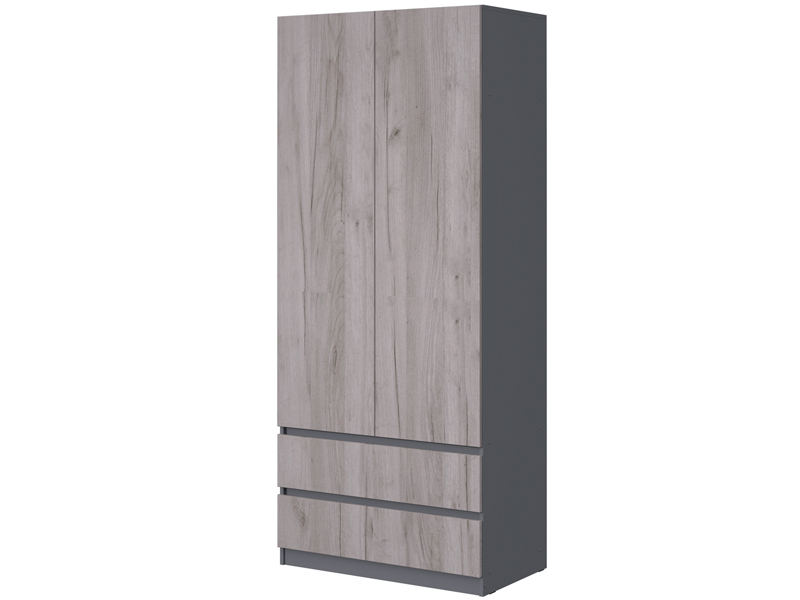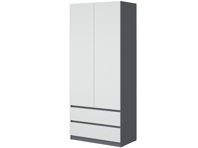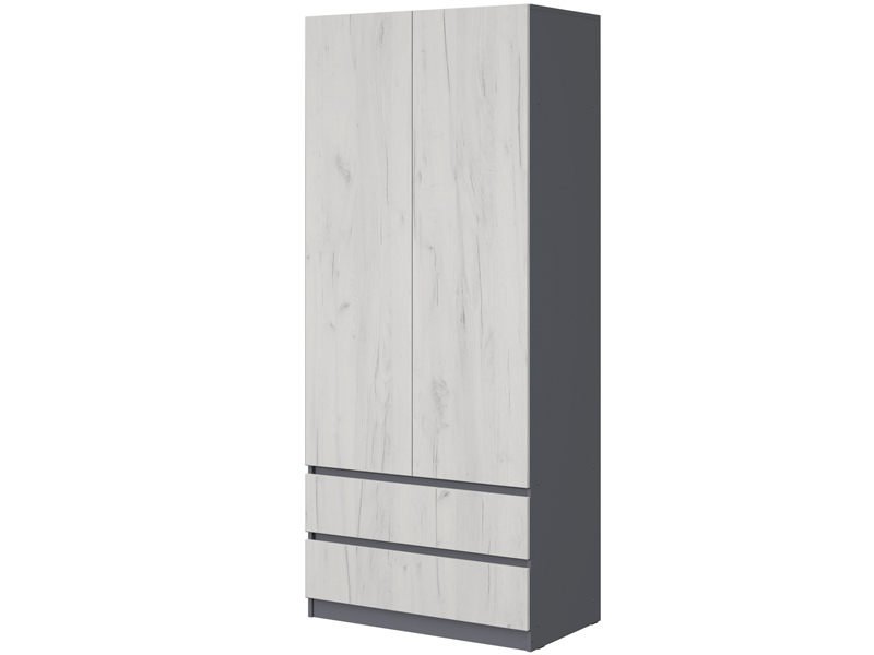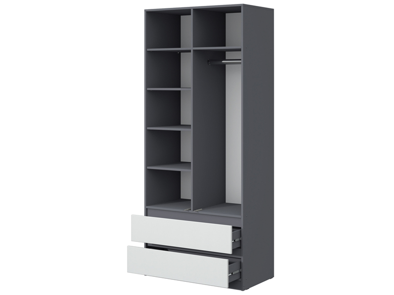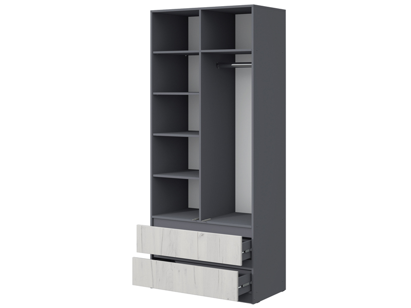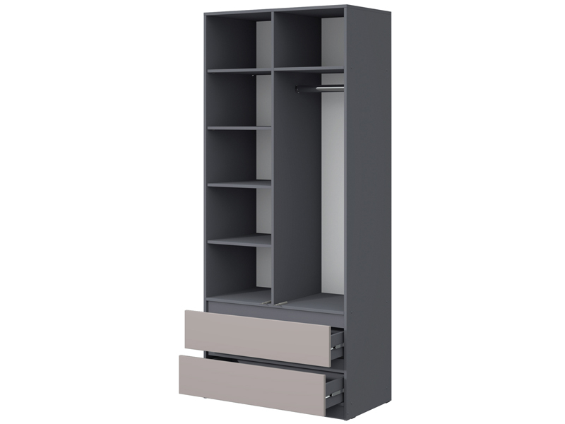 - Шкаф комбинированный: отделение со штангой (421 мм) для одежды на плечиках, отдел с полками и 2 выдвижных ящика.