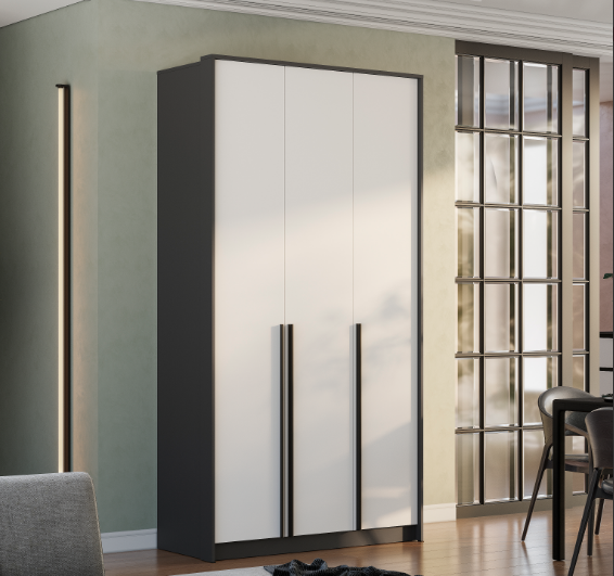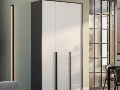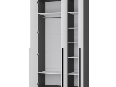 Коллекция "Шарм" - современная классика в контрастном исполнении "белый/графит". Шкаф обретает массивность благодаря монолитному ЛДСП - порталу, дополнен вертикальными черными ручками и надежными петлями с доводчиками. Дополнительно комплектуется полками ПЛ-06 белый.