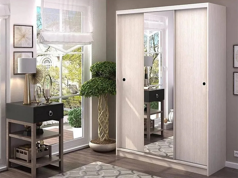 Современный шкаф-купе с большим зеркалом. Непритязательный дизайн Шкаф-купе и простота форм позволяют гармонично вписать его в любой интерьер. Возможны различные варианты наполнения.