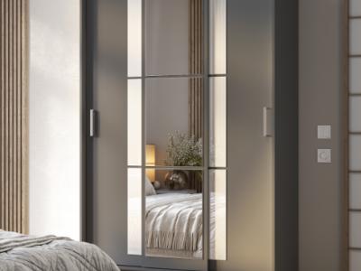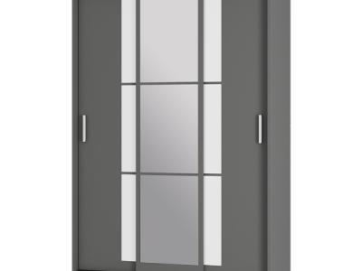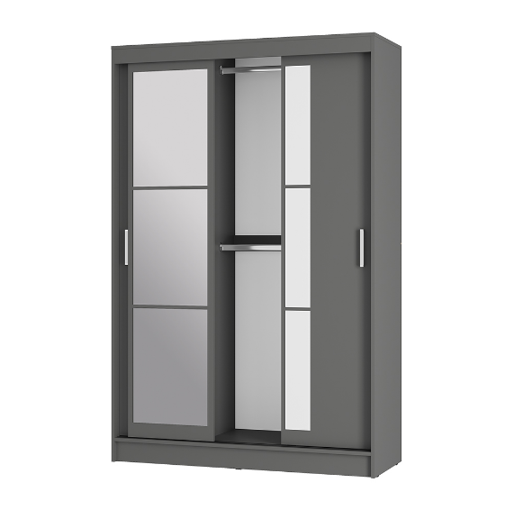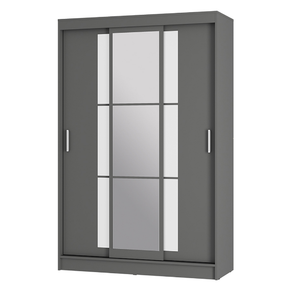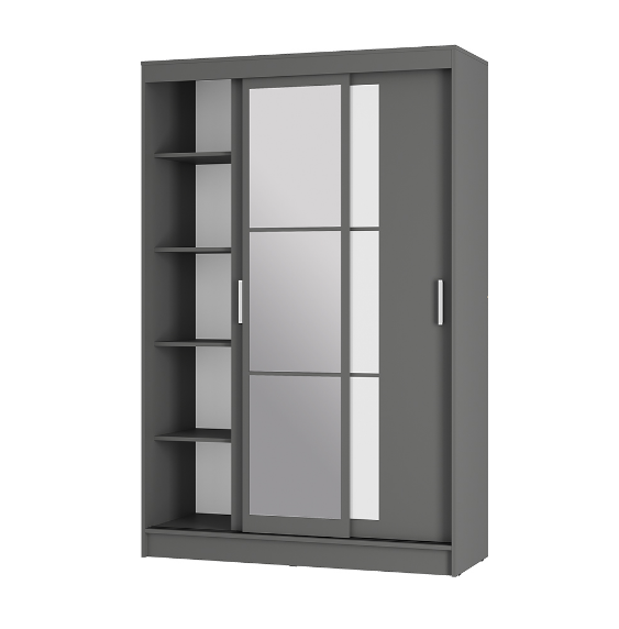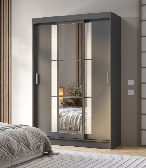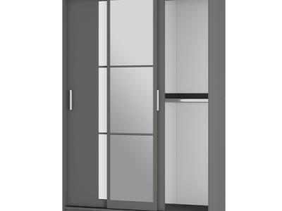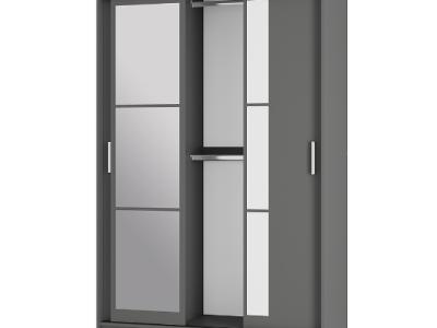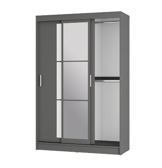 Современный бюджетный шкаф-купе, выполненный в трендовом графитовом оттенке. Центральная часть шкафа украшена зеркалом с еврокромкой и декоративными вставками, выполненными в технике белый лакобель. Шкаф вместительный и функциональный, имеет 2 удобных отделения - одно с полками для хранения, второе широкое отделение с 2-мя штангами, расположенными на разных уровнях, что двое увеличивает полезное пространство для хранения.