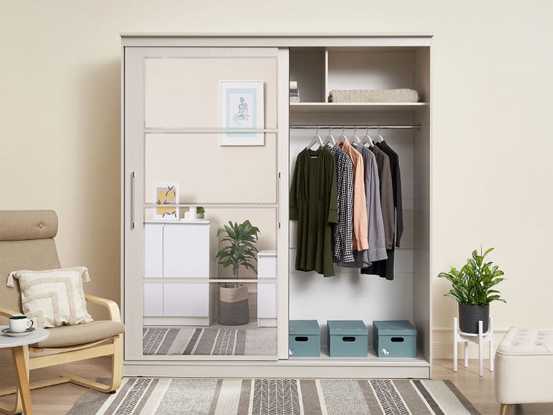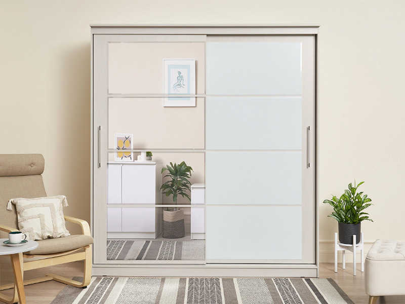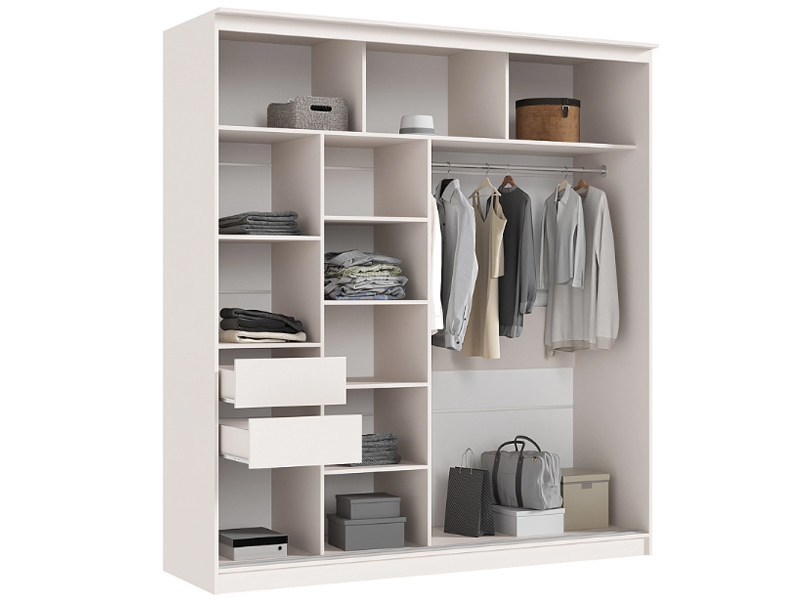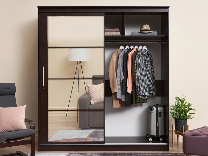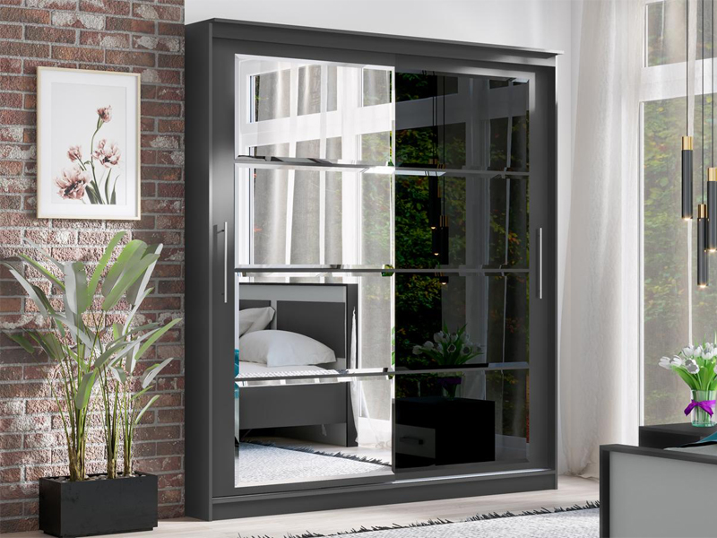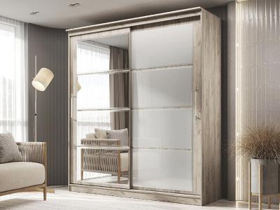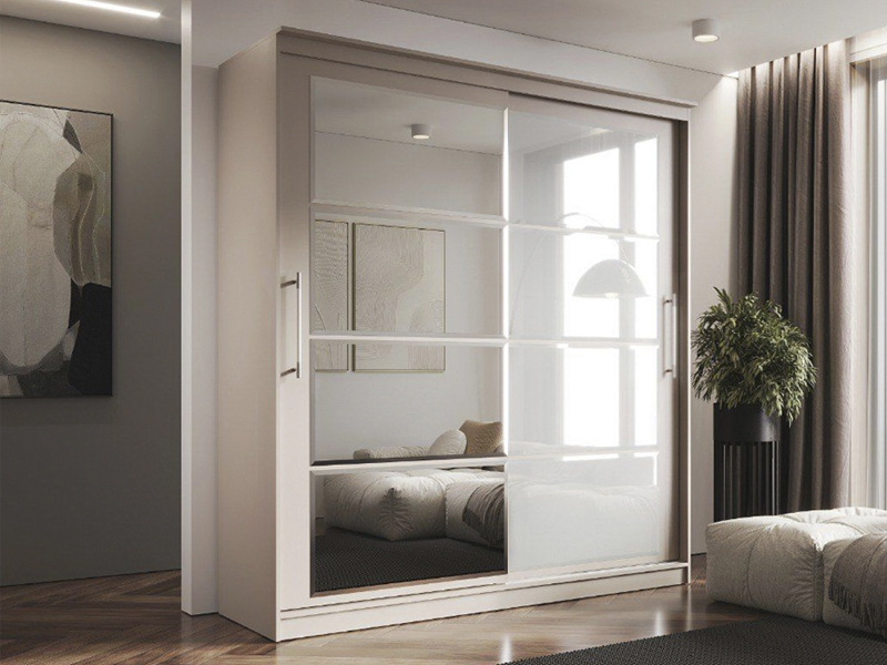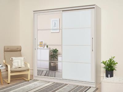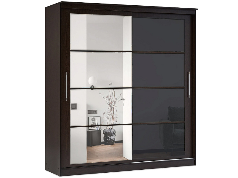 Элегант - шкаф купе с двумя дверями. Оригинальный дизайн фасада делает его весьма привлекательным. Зеркала, занимая практически всю площадь раздвижных дверей, скрадывают габариты шкафа, зрительно расширяют помещение.