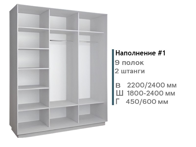 Шкаф-купе "Комби" 3-Х СТВОРЧАТЫЙ 2,1x2,2 (глубина 0,45 м)