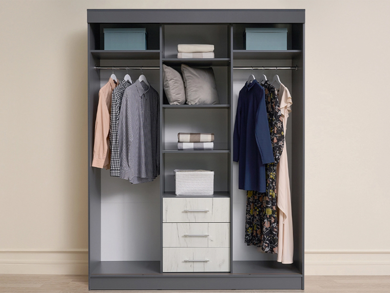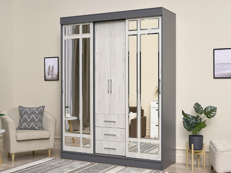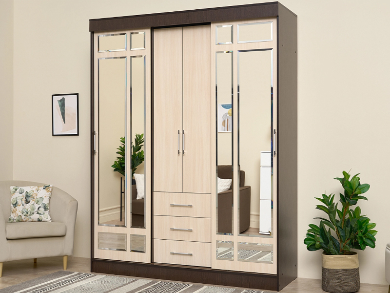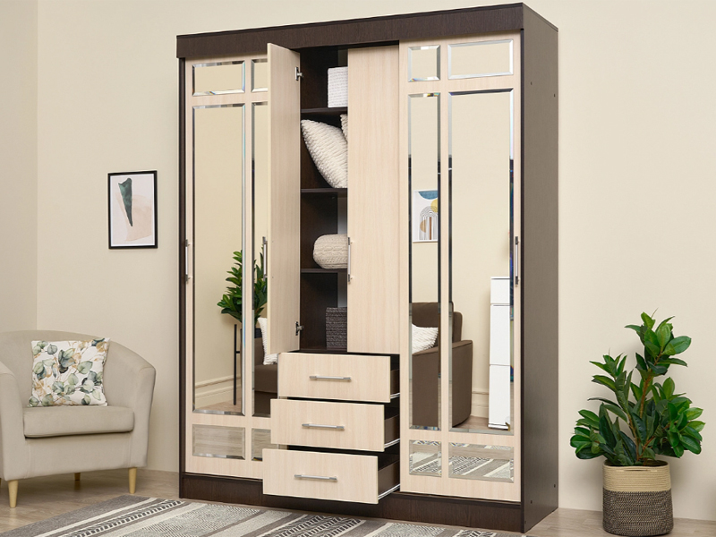 Лаконичный внешний вид и стильный дизайн удачно сочетаются с прак- Шкаф-купе тичностью и надежностью. Боковые зеркала оживляют шкаф-купе, сглаживают его объемные формы, придают ему некоторую хрупкость и невесомость.