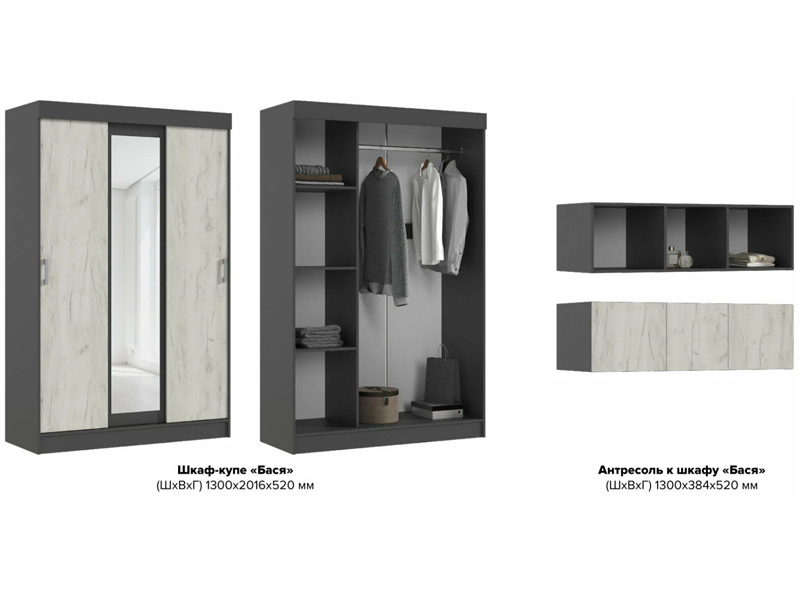 Шкаф-купе с антресолью "Бася" (Дуб крафт)