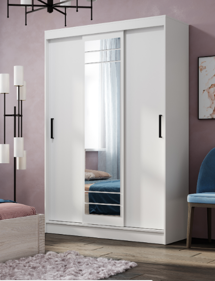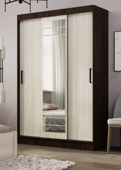 Трёхдверный шкаф-купе "Тео" ШКК-02 представляет собой сочетание практичности и функциональности. Это оптимальный вариант с точки зрения эргономики пространства. Раздвижные створки снабжены удобными ручками, центральная створка полностью декорирована зеркалом с еврокромкой, которое создаёт иллюзию расширенного пространства. Внутри с одной стороны находятся пять просторных полок для хранения вещей и постельного белья, с другой стороны – вместительная зона хранения с двумя горизонтальными хромированными штангами для одежды на вешалках.