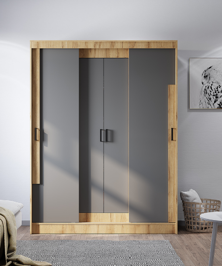 Шкаф-купе "Смарт" - это нестандартный эргономичный фасад, включающий в себя две системы открывания секций (купе, распашные створки), две просторные вертикальные секции для верхней одежды со штангами, вместительная центральная секция с полками, оригинальный дизайн и сочетание декоров, малые габариты, простота конструкции, удобство хранения.
