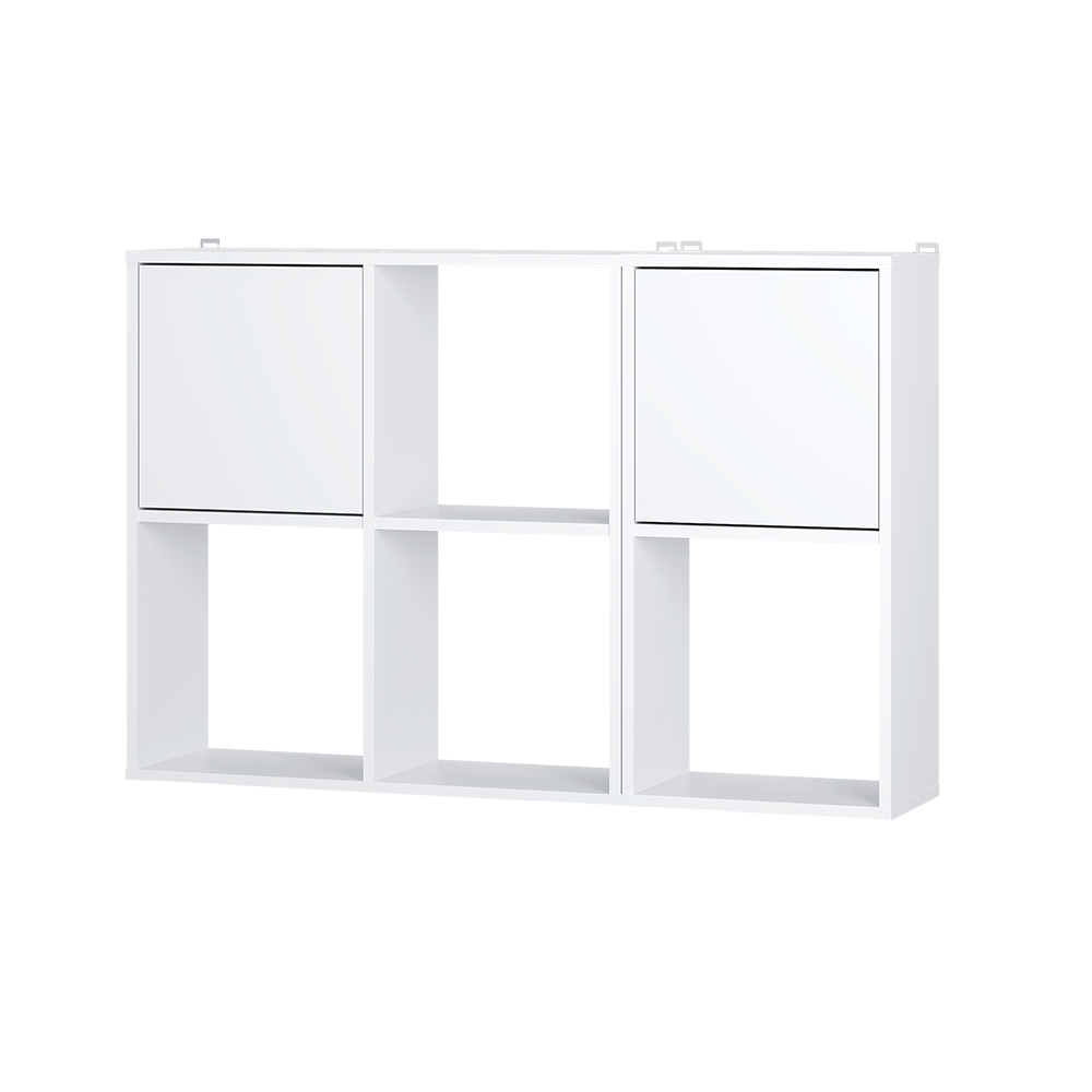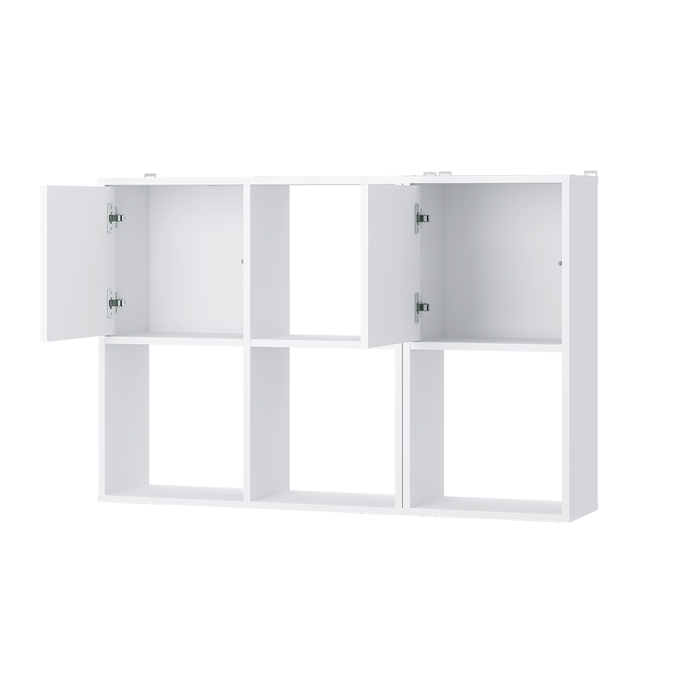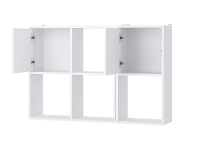 Стеллаж-полка "Берг" выполнена в белом цвете, что создает единый стиль и гармоничное оформление рабочего пространства. Изделие сочетает в себе открытые и закрытые отделения разного размера, обеспечивая удобное хранение книг, документов и декоративных элементов.