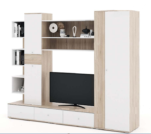 Особенности стенки: - Стенка "Верона" МДФ прекрасно впишется в любой интерьер за счет своей простоты, четких линий и идеального сочетания цветов. - Стенка вмещает в себя: большой плательный шкаф с верхней полкой, закрытый пенал с полками и выдвижным ящиком, тумба с тремя выдвижными ящиками в нижней части и большое количество открытых полок для книг, дисков, фотографий и т.д. - Плюсом стенки является ниша под ТВ 1100х900 мм, в нее можно поместить телевизор с большой диагональю. - Собирается в правом и левом исполнении. - Отличный вариант для гостиной, спальни, кабинета или импровизированного кинотеатра. Материал: МДФ.