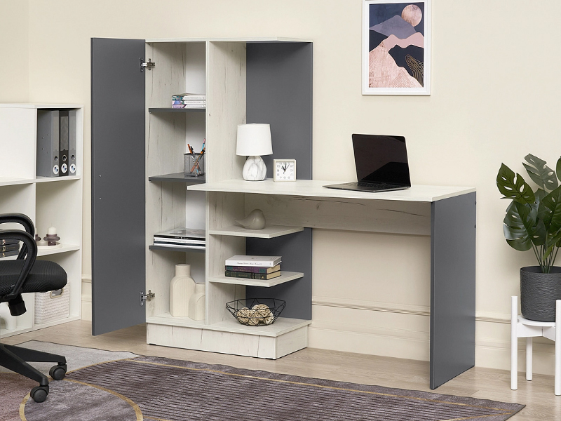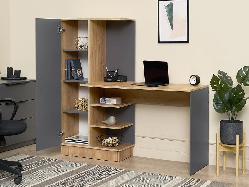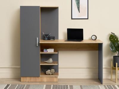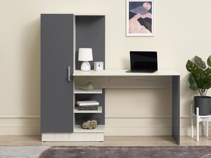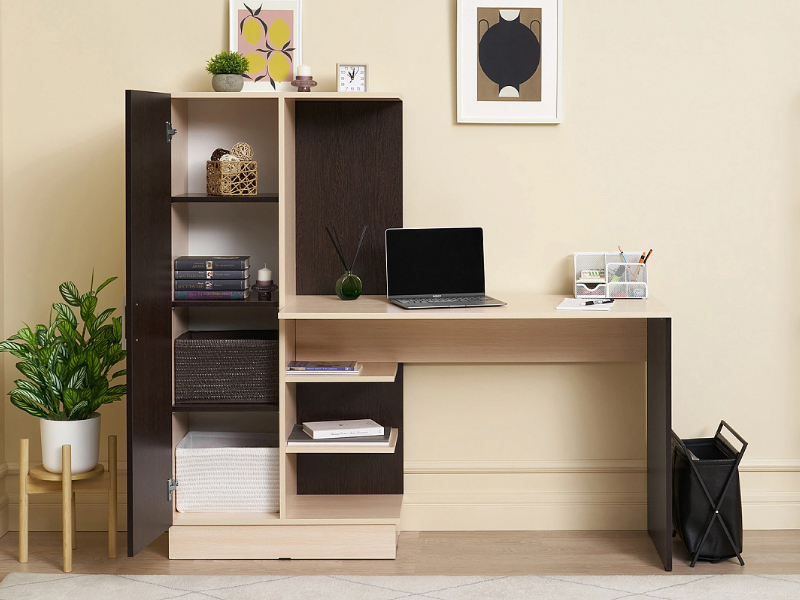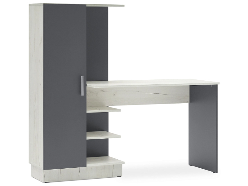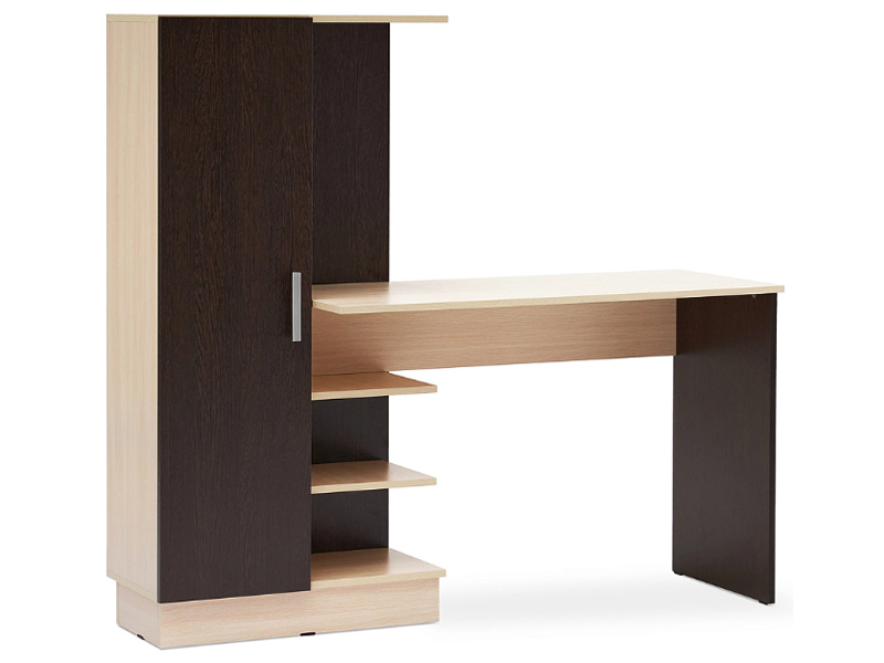 Компьютерный стол № 1 совмещает пенал и стол в один комплект. Конструкция позволяет максимально использовать полезное пространство и создает дополнительное место для хранения рабочей документации или школьных принадлежностей.