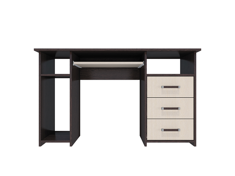 Стол имеет выкатную панель для клавиатуры длиной 350 мм на роликовых направляющих и выкатные ящики на роликовых направляющих длиной 400 мм.