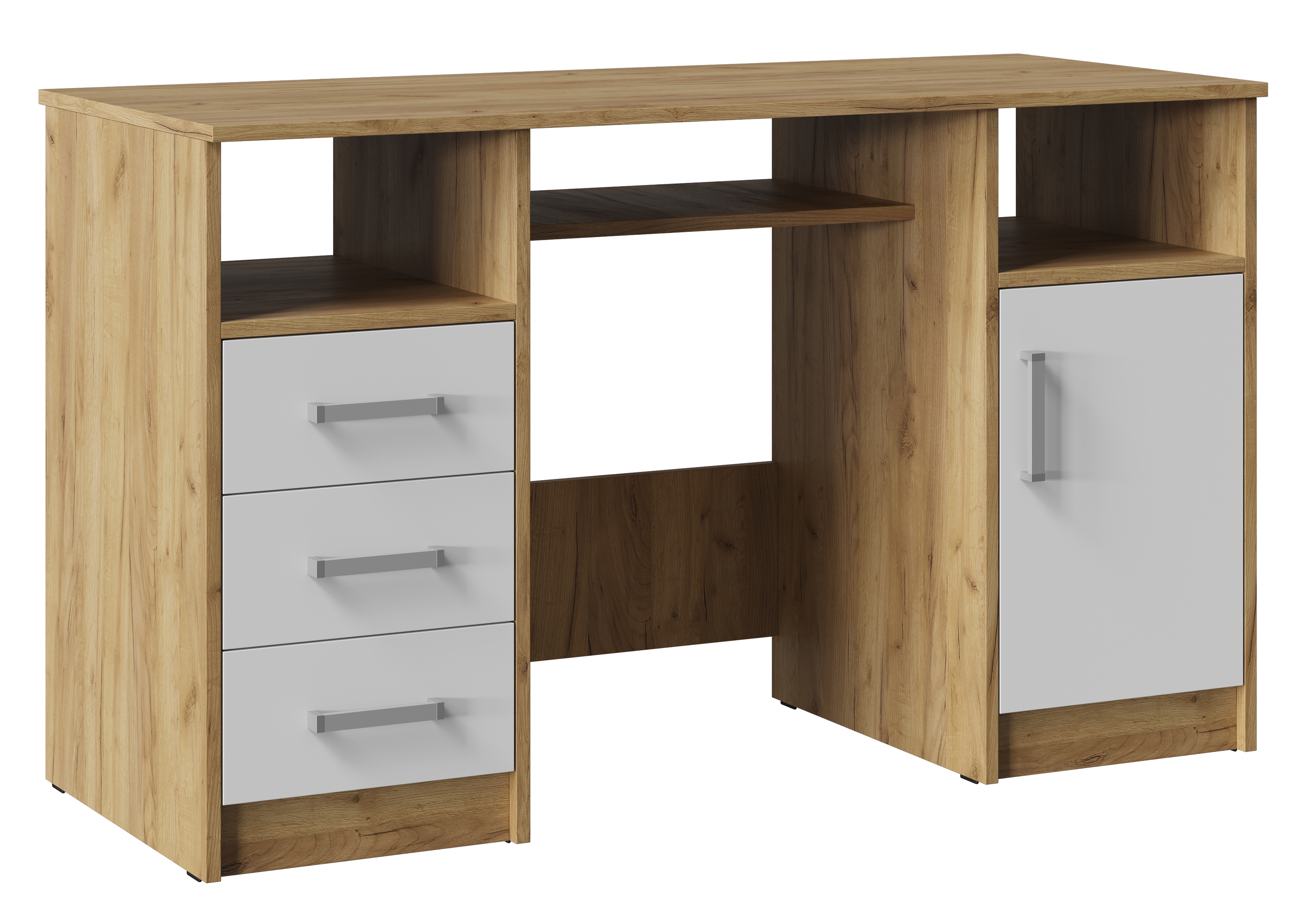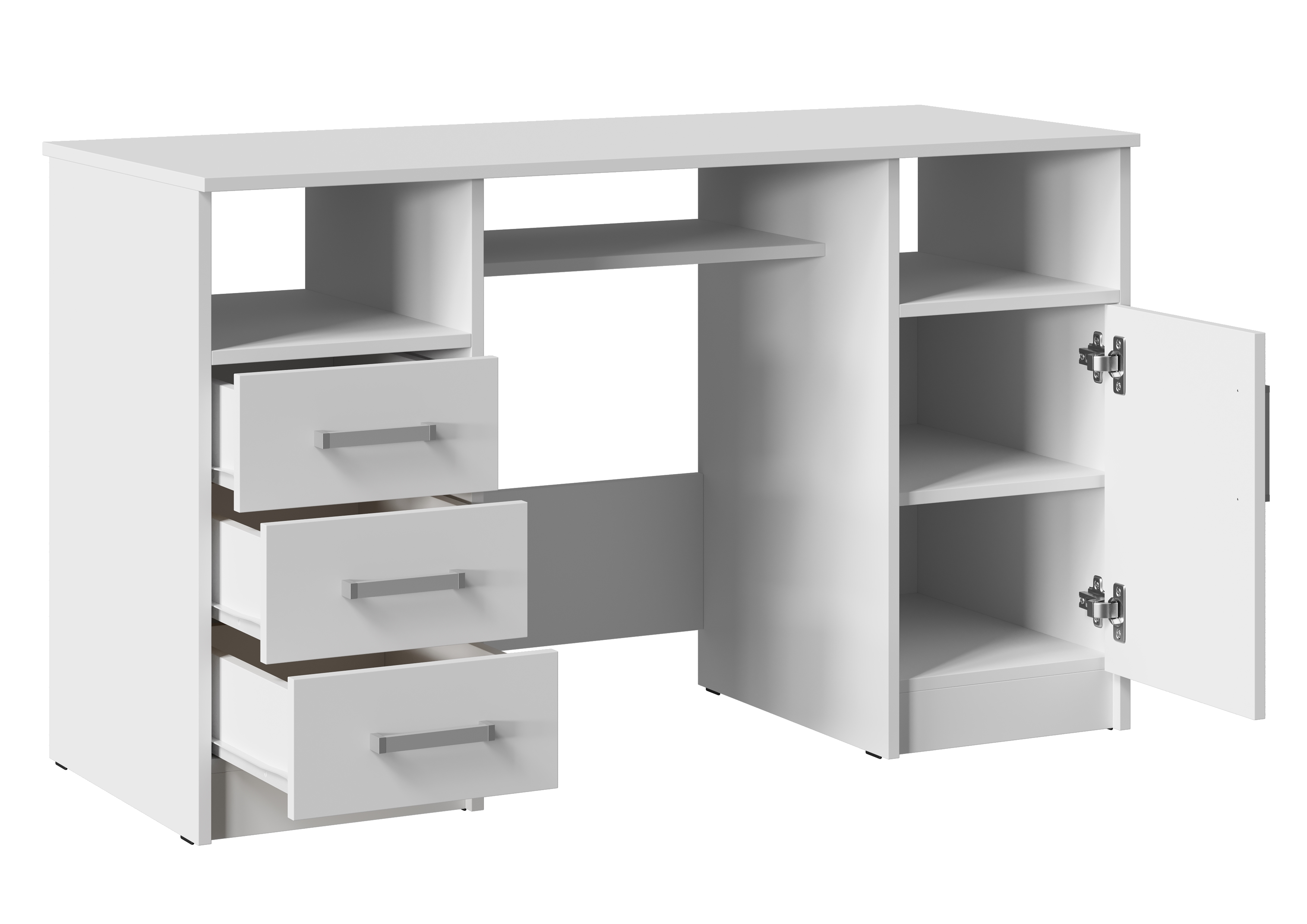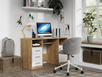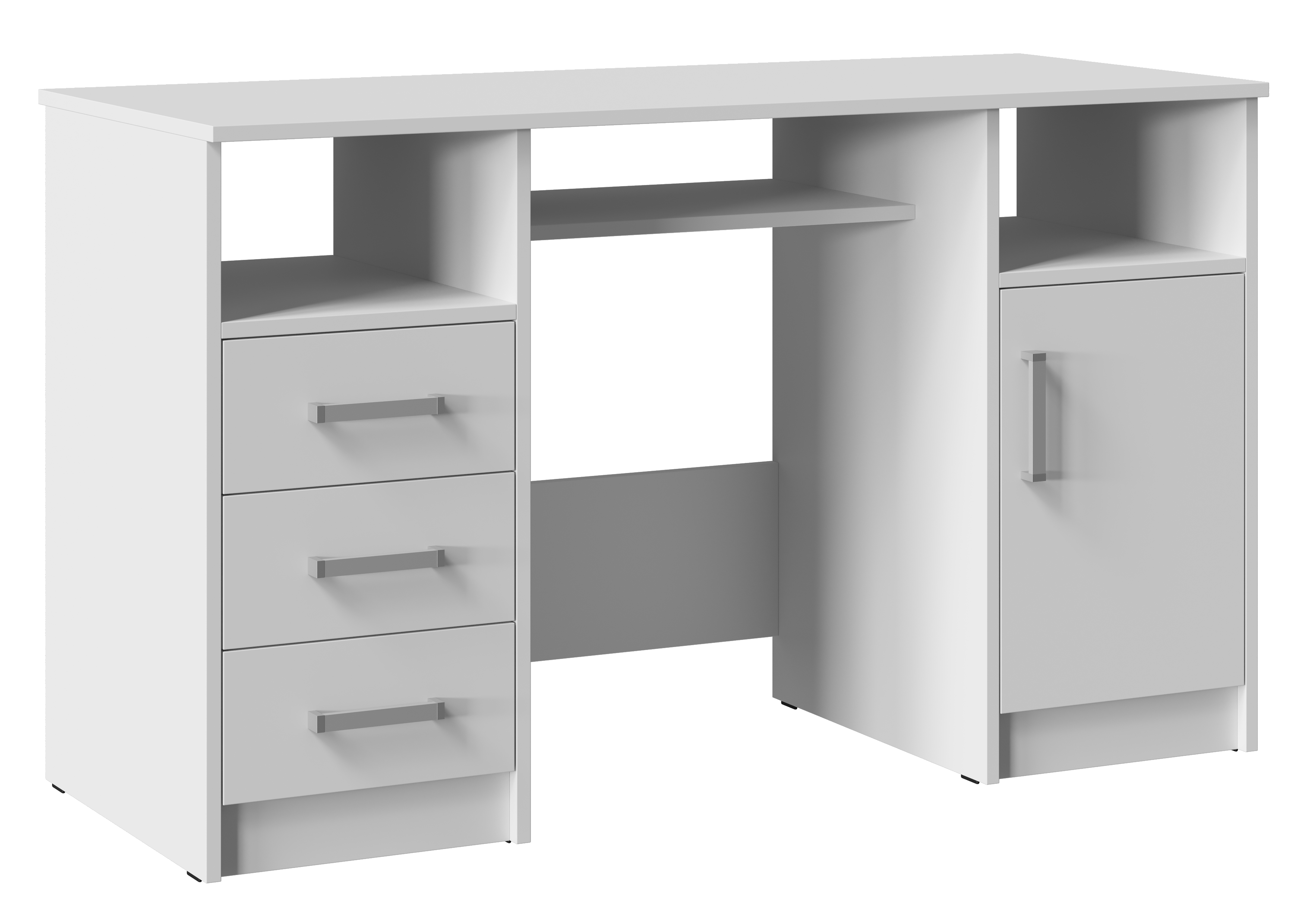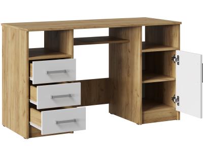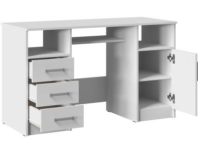 Он состоит из двух тумб, расположенных по краям, и столешницы, обеспечивающей достаточно места для работы и учебы. Открытые ниши, расположенные под столешницей над каждой из тумб идеально подходят для хранения книг, документов или других необходимых вещей, которые всегда должны быть под рукой.