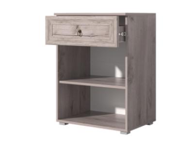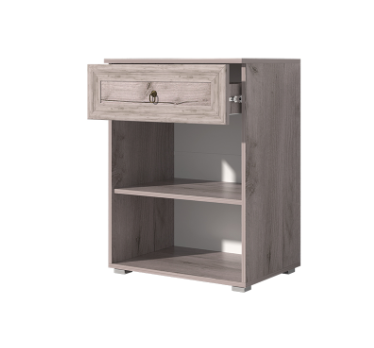 - Тумба включает в себя выдвижной ящик на шариковых направляющих и отделение для хранения с полкой.