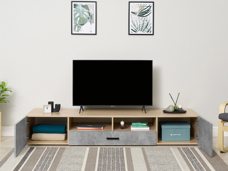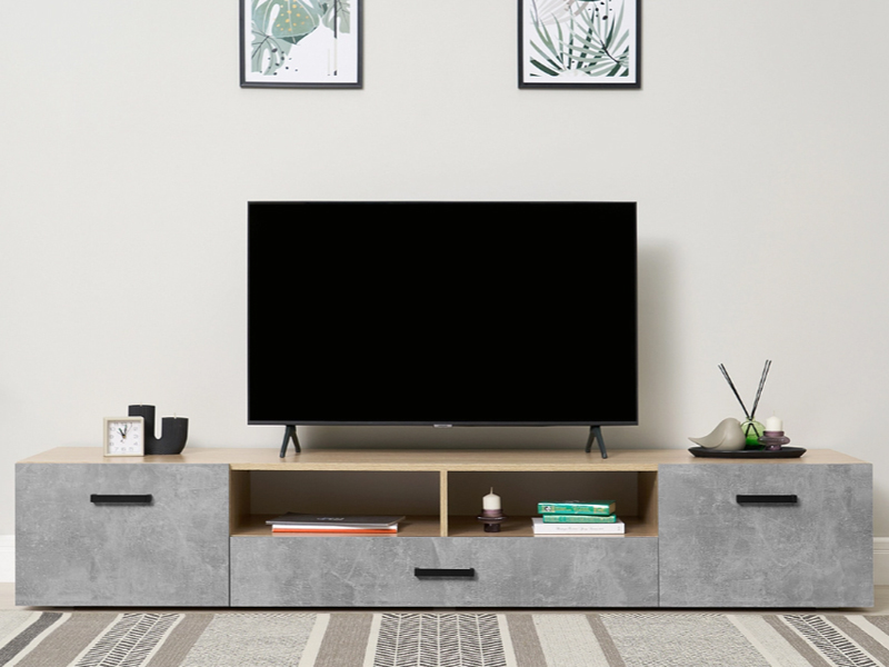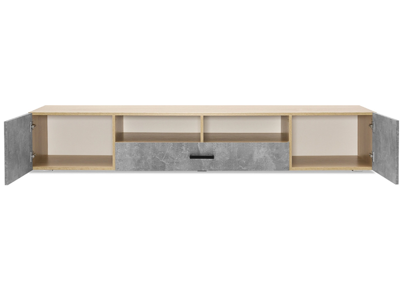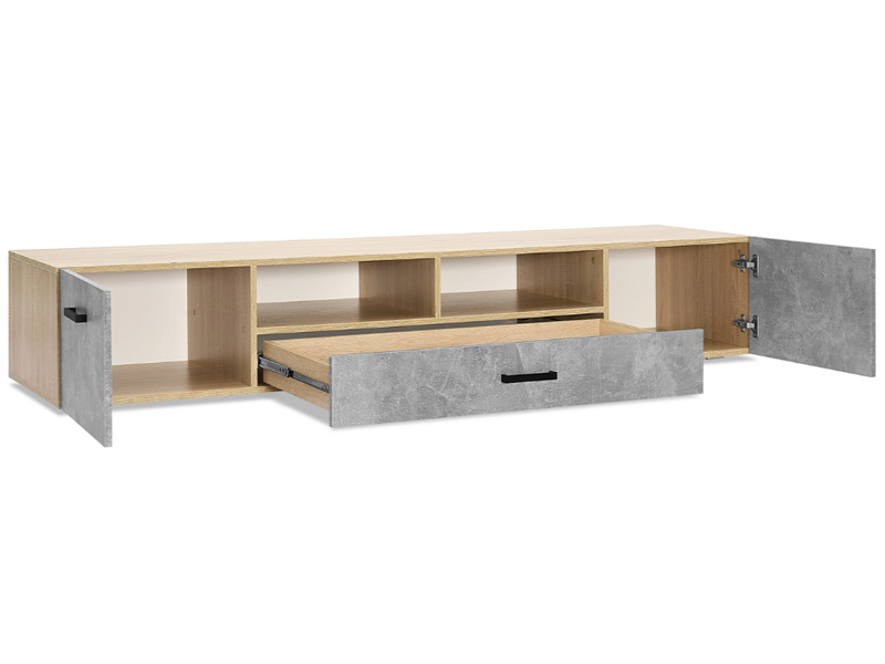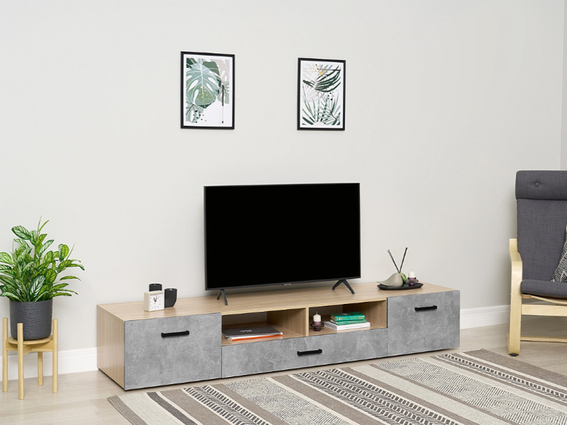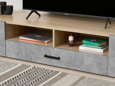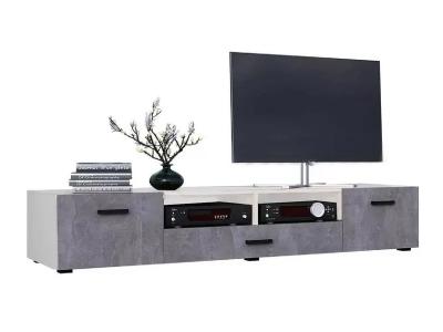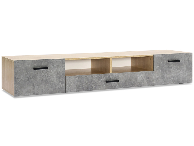 Тумба под ТВ (2дв.+1ящ.) к модульной гостиной "Нэнси New" ЛДСП (Бетон светлый/сонома(белый))