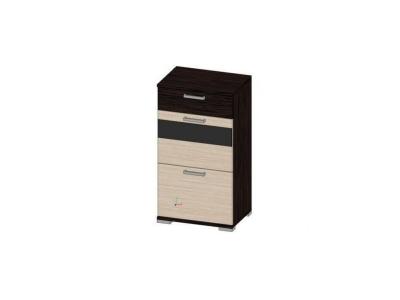 В тумбе 2 секции и ящик на шариковых направляющих длиной 300 мм.